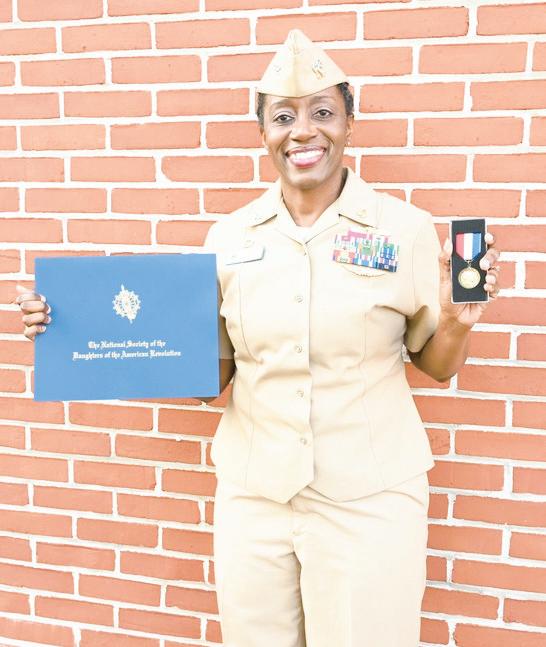 ABOVE: CaptainJohnetta C.Thomas the first female commanding officerofNaval Support ActivityMechanicsburg,was honoredwith theWomen inAmerican HistoryAward bythe Cumberland CountyChapterofthe Daughters oftheAmerican Revolution.During a ceremony held at the Cumberland CountyHistorical Society,CaptainThomas expressed gratitude for the recognition and reflected on herjourneyas a leader.The award celebrates herhistoric role and contributions to hercommunity,marking anothermilestone in herdistinguished career (PHOTOBYCHRISTYTRABUN,NAVALSUPPORTACTIVITYMECHANICSBURG)