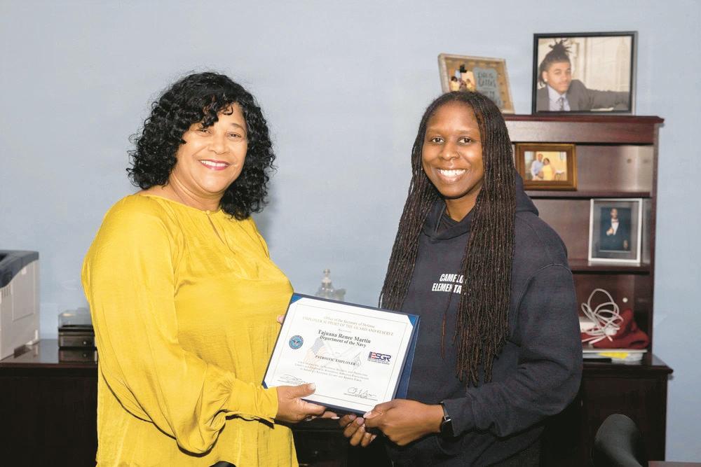 Recently, Martin was recognized with a Patriot Award presented by the Employer Support of the Guard and Reserve (ESGR) recognizingleadersforoutstandingsupport of Guard and Reserve members and their families Martinearnedthishonorforgoing “above and beyond” assisting a Code 109 member preparing for deployment.