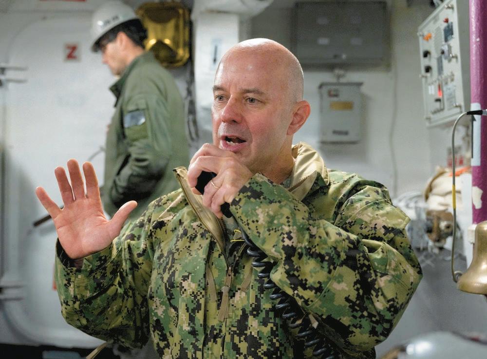 Sailors filled the hangar bay as Caudle outlinedhisprioritiesfortheNavy’sfuture— The Foundry, The Fleet, and The Way We Fight. Truman Commanding Officer Capt. DanielProchazkasaidhewasproudhisship waschosentohosttheCNO’sfirstvisit.