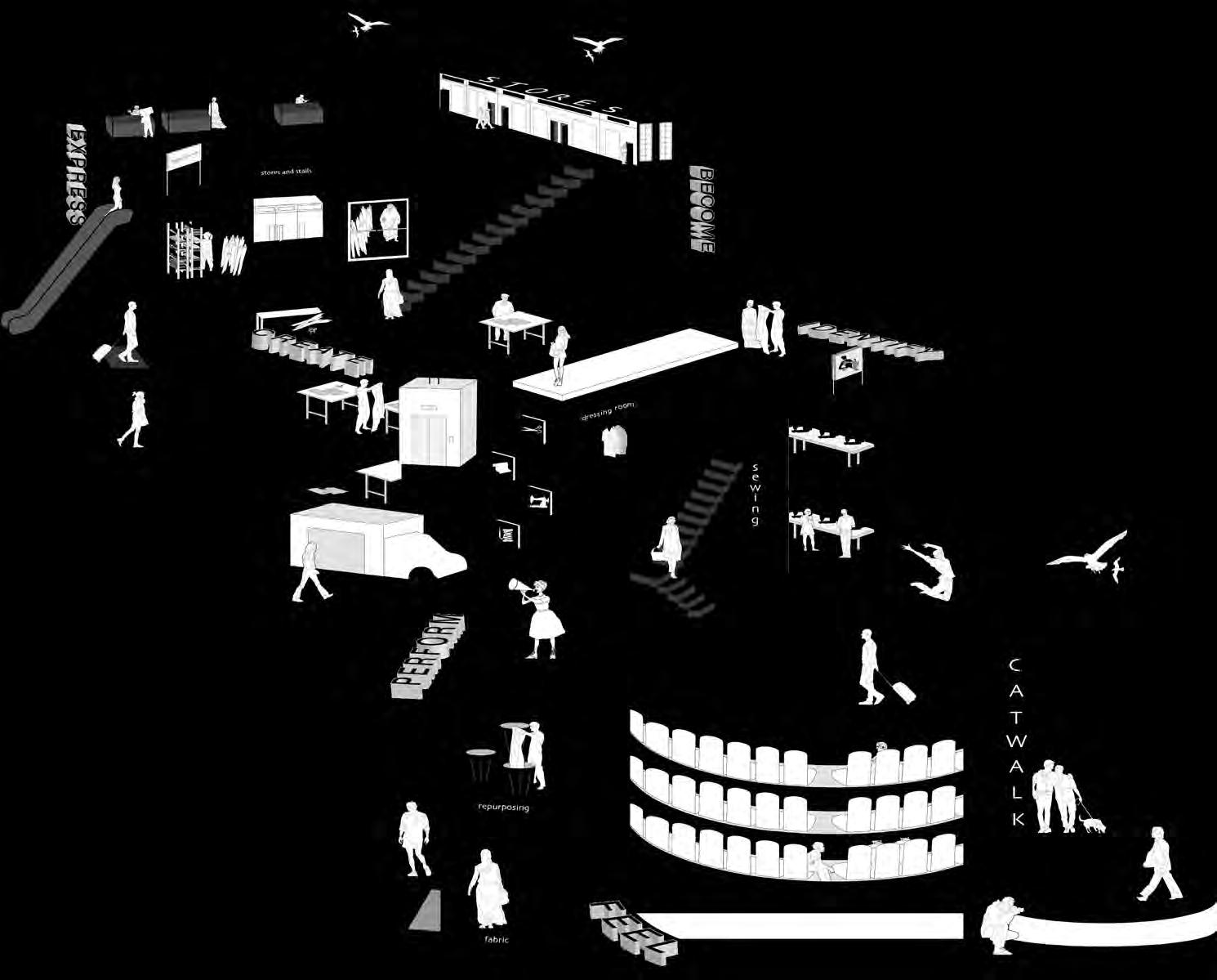 This project seeks to reconnect the two main communities of Brick Lane—the Bangladeshi and LGBTQ+ communities—through the use of fabric, a material of cultural and identity significance to both groups. The chosen site, located within the renowned Truman Brewery’s Upmarket, currently has a planning application for a mall and office building, replacing a culturally significant space, crucial to the economic well-being of the community. The project presents an alternative to the existing planning application, ensuring that the needs and expectations of the surrounding communities are prioritized. To achieve this, the design process was informed by thorough contextual and community research, including interviews, installations, and historical analysis.