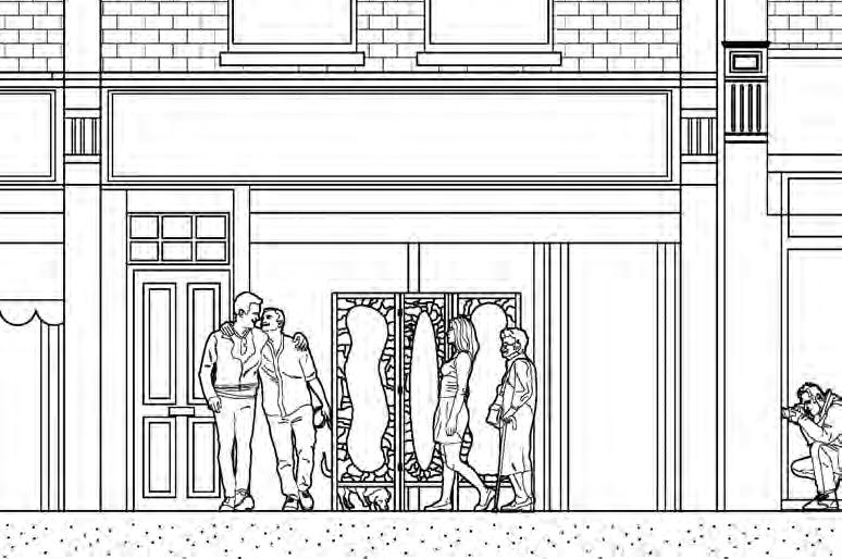 (above) Render showing employees in their new office lounge. (above) Render showing residents enjoying their new concept store.