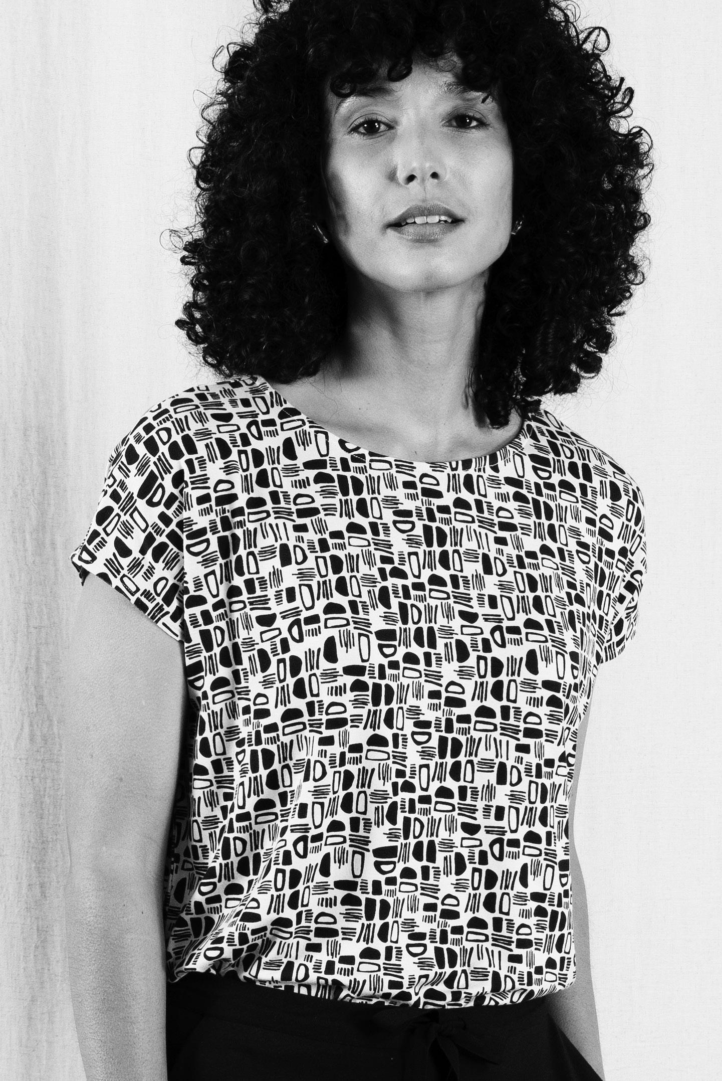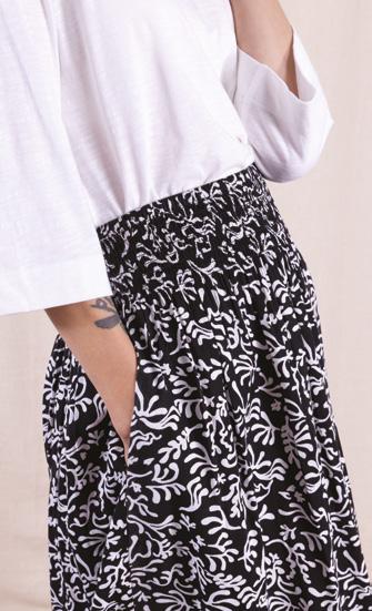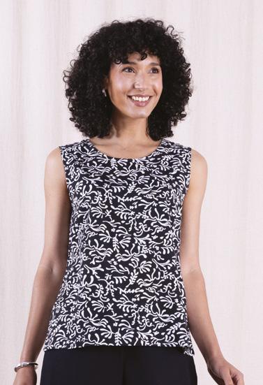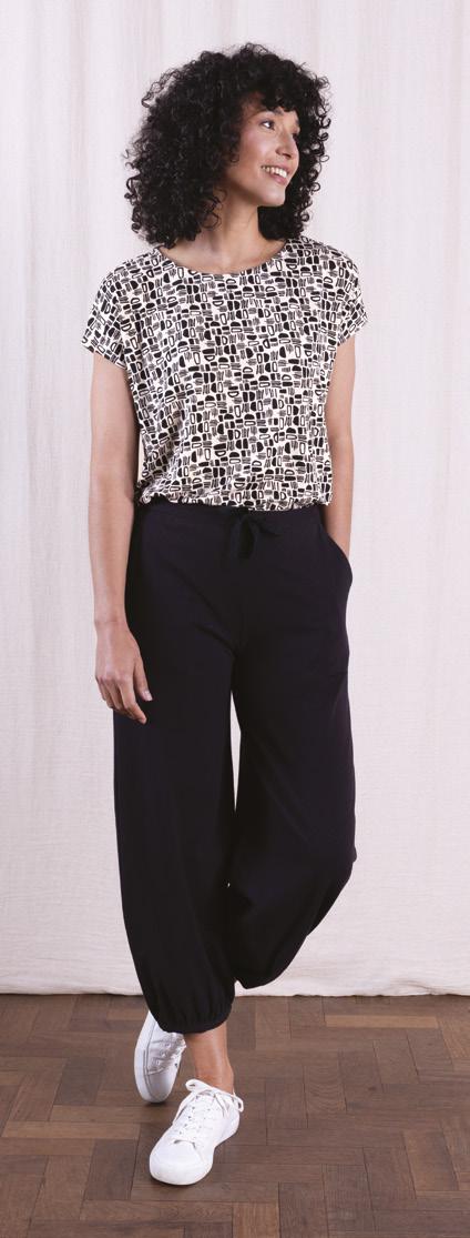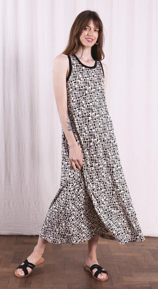 INTRODUCING OUR NEW MODAL/LYCRA JERSEY WITH OUR GRAPHIC OTTO PRINT (BELOW) AND OUR CLASSIC LINEN/VISCOSE, (LEFT) WHICH IN THIS STORY IS TIMELESS IN BLACK , A STAPLE YOU WILL ALWAYS LOVE.