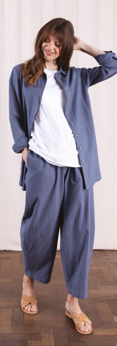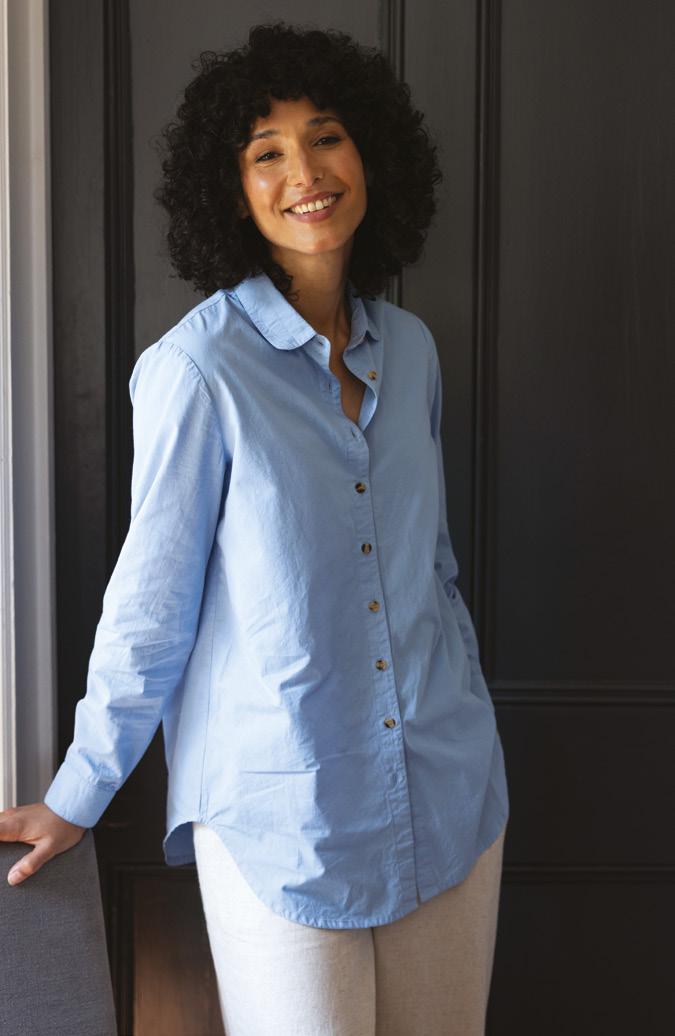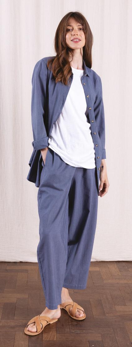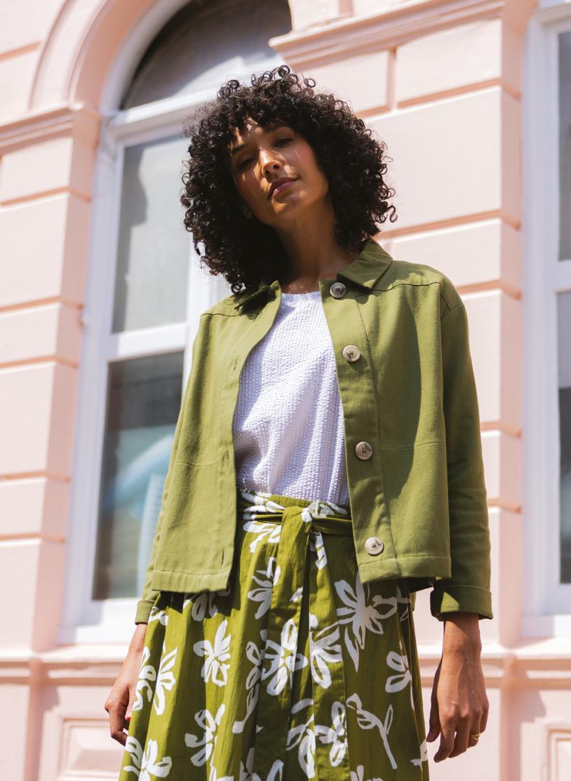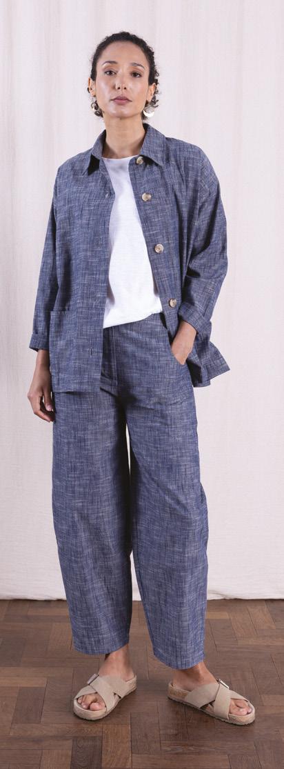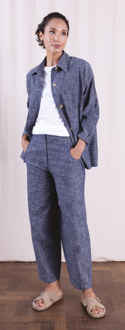 From cotton poplin to cotton slub, cotton drill and Chambray, this fibre is so versatile and creates such a variety of fabrics. Natural, breathable and biodegradable. Poplin is a lovely crisp cotton fabric in our exclusive prints, perfect for the summer months. Whilst Drill is a heavier cotton fabric with a twill weave, similar in structure to denim, so perfect for trousers and jackets on a cooler day. Our ever popular Chambray returns with its denim-like look but that has less impact on the environment than Denim.