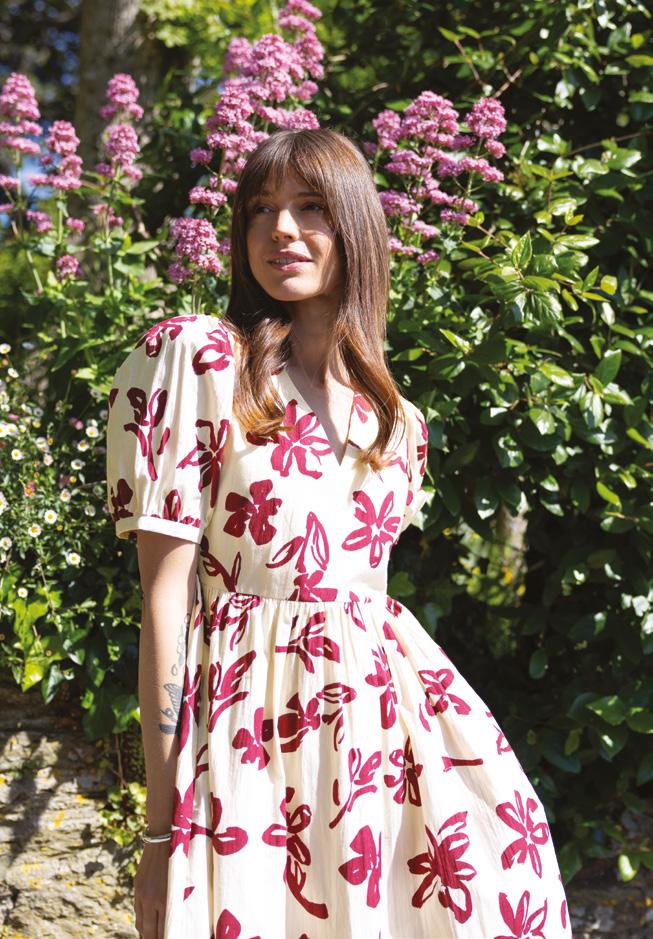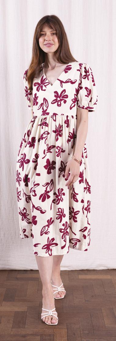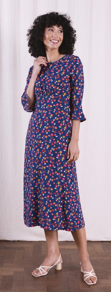 FEATURING OUR DELICATE PANSY PRINT , IN A BEAUTIFUL FLUTED SLEEVE MIDI DRESS AND RELAXED BUTTON THROUGH DRESS.