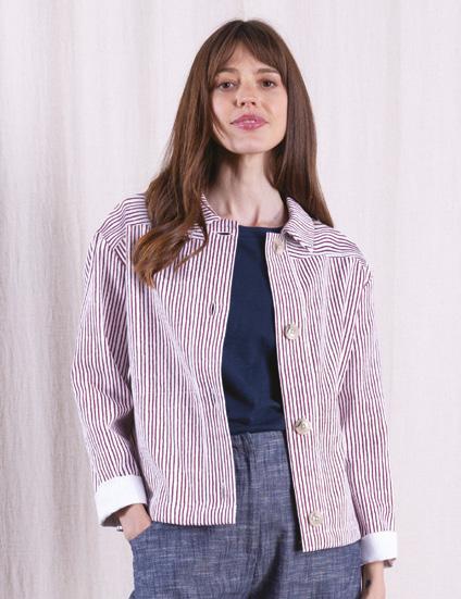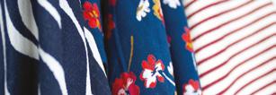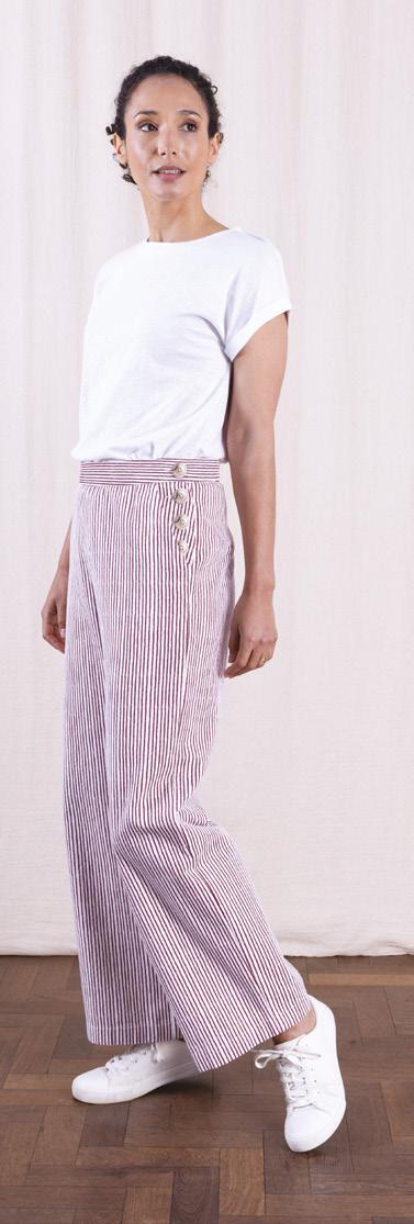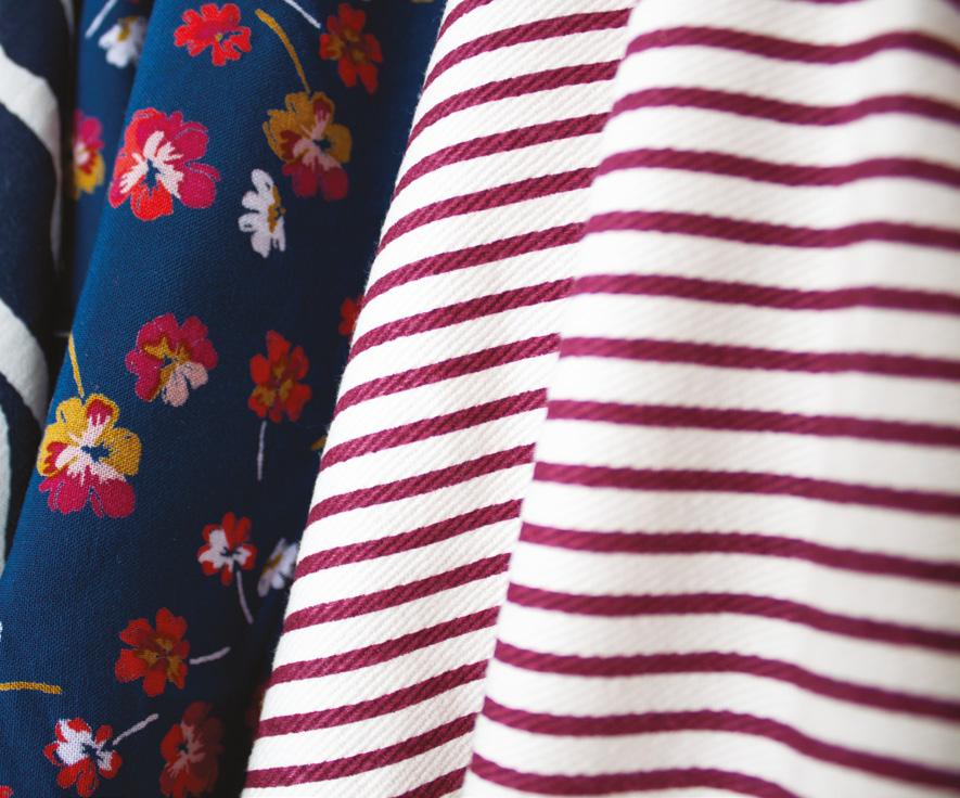 OUR PRINTED STRIPE COTTON DRILL BRINGS A FRESH TAKE ON A NAUTICAL STRIPE IN THE ROSEWOOD COLOURWAY, AND OUR PANSY PRINT WILL BE A SUMMER FAVOURITE.