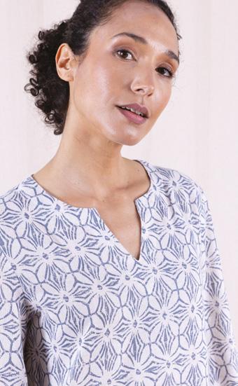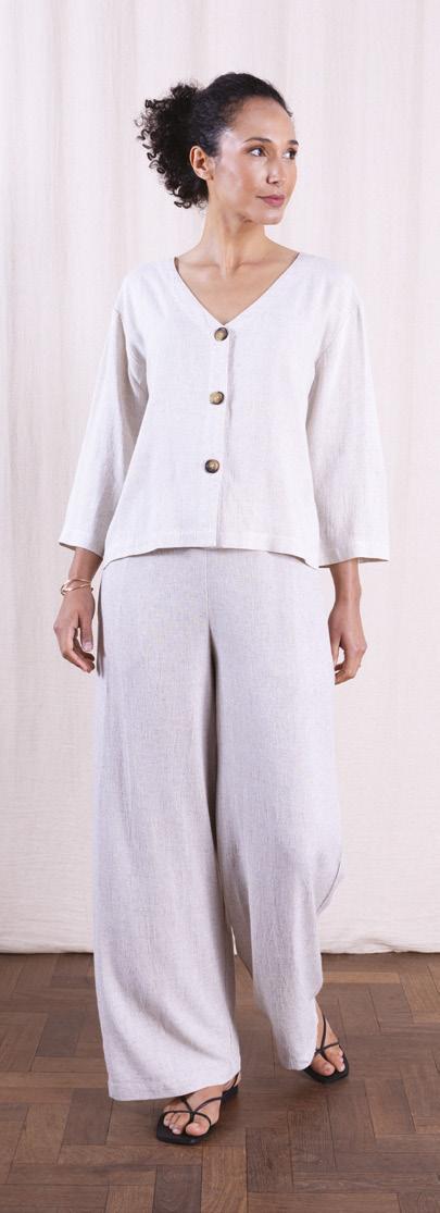 This season, as well as the return of our bestselling Linen and Viscose fabric we have also introduced a Linen Cotton yarn for our knitted tops. These are the perfect blends of extraordinary fibres. This summer you will find classic summer pieces from trousers and jumpsuits to jackets, dresses and tops in multiple colours, both plains and prints in this luxurious mix of 25% Linen and 75% Responsible Viscose. Both are made using European Linen, which is grown organically.