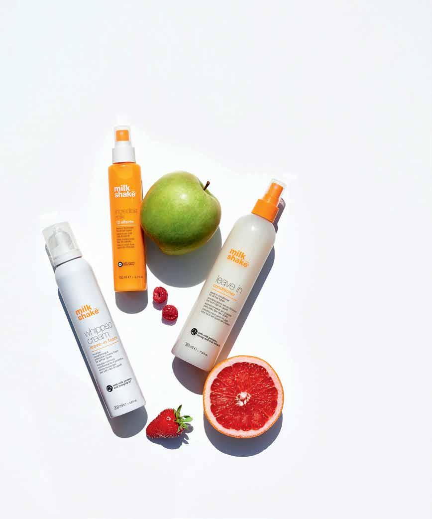 milk_shake hair care and styling products are designed to make any hair concern a thing of the past. Step-bystep, milk_shake will take you on a deliciously-scented, luxurious journey, resulting in vibrant, healthy-looking hair. Milk protein has a supplementary and highly conditioning effect on hair’s structure, and is the integral ingredient in milk_shake products. The results include increased volume, elasticity, and damage repair, while maintaining and enhancing hair color. For a complete sensorial experience milk_shake products have also been given unique and irresistibly sweet fragrances.