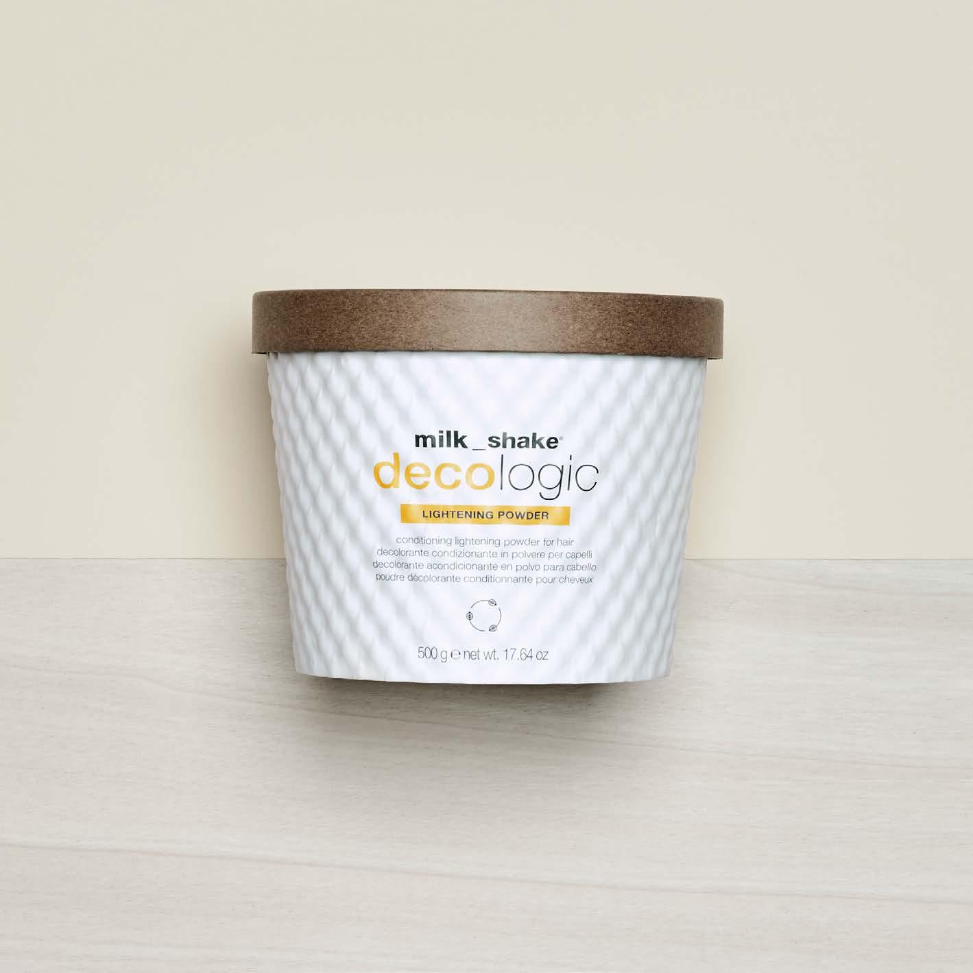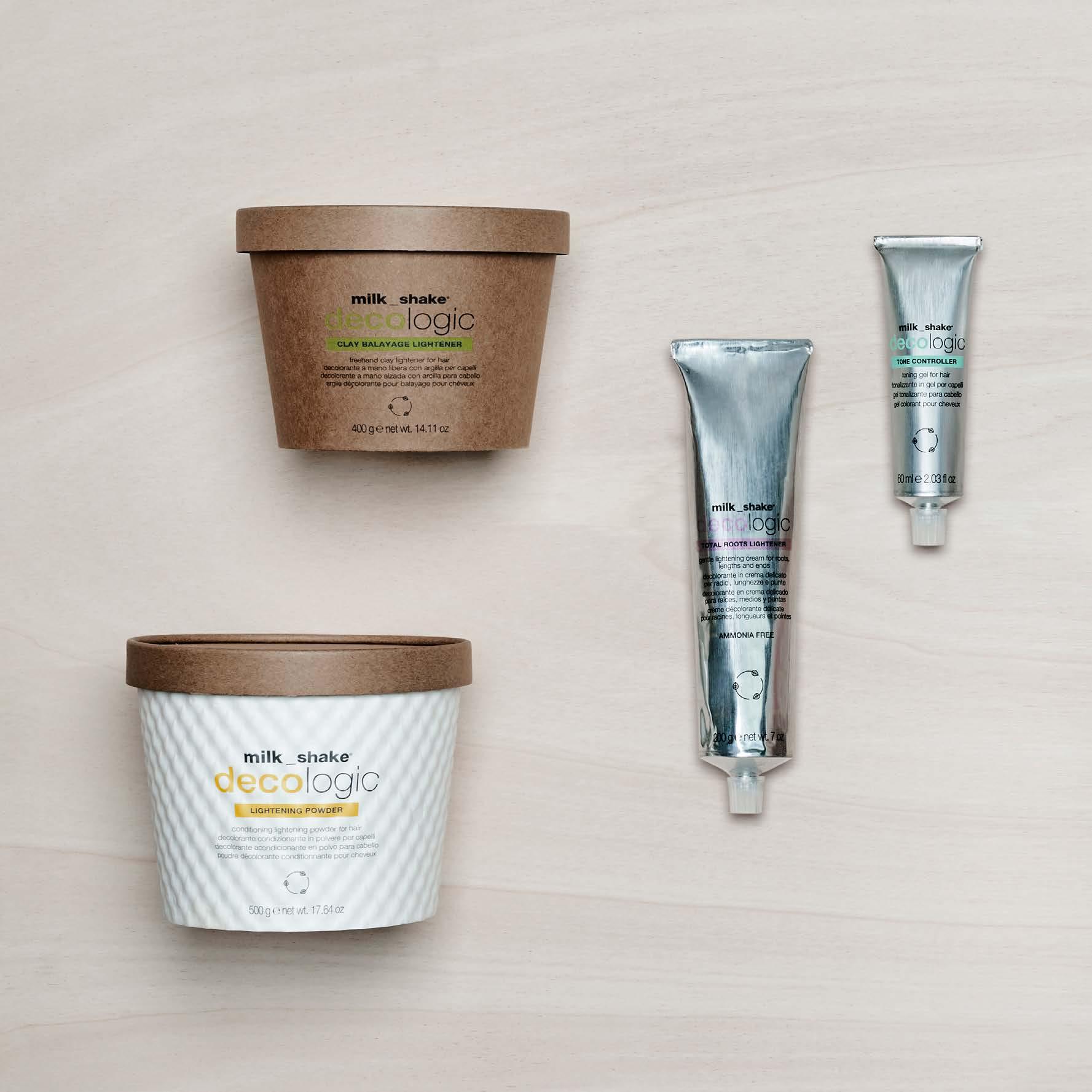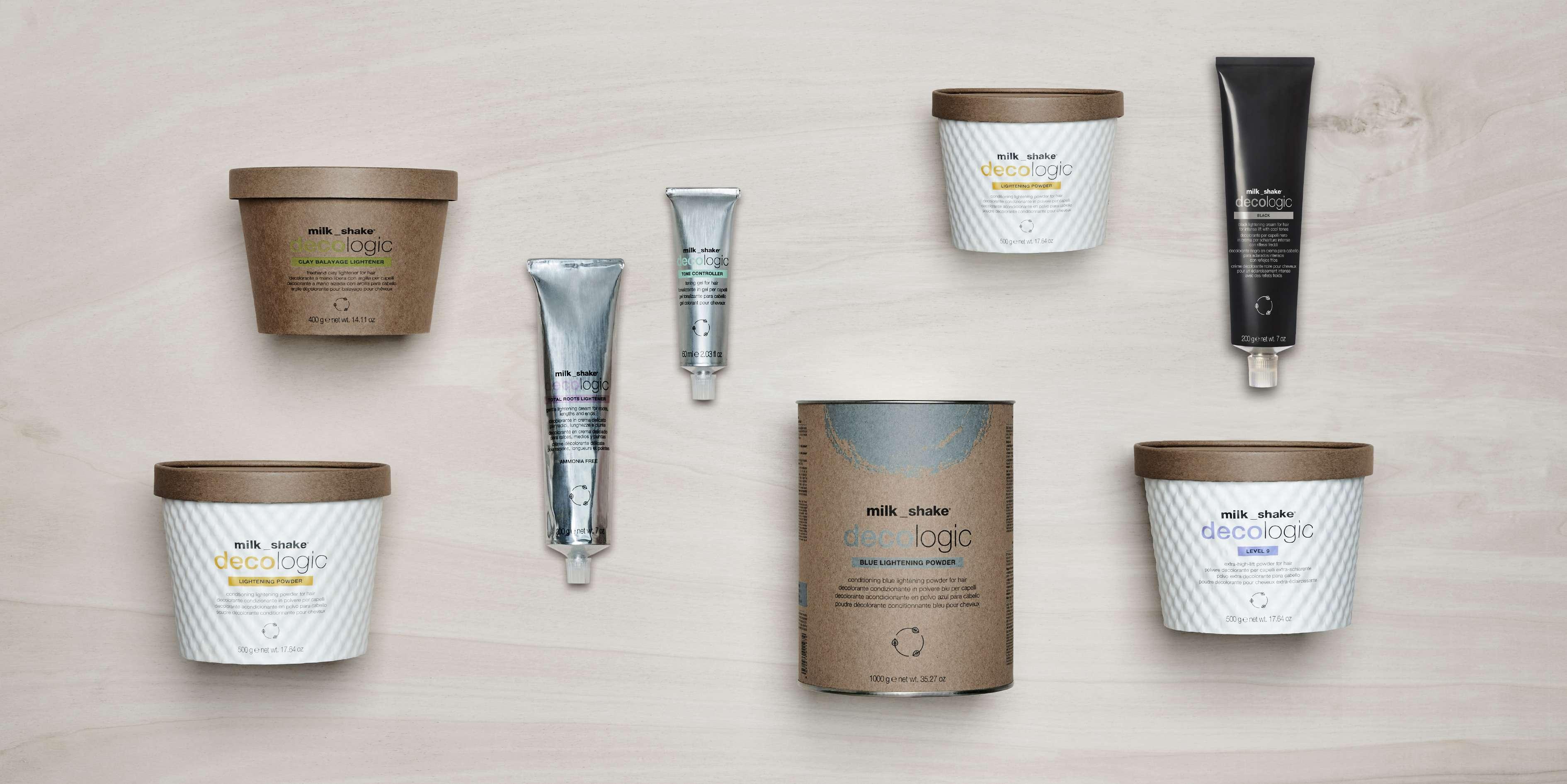 milk_shake® decologic is a complete range of lightening products created through the know-how of z.one conceptTM research laboratories to offer a wide range of solutions for in-salon lightening and toning services