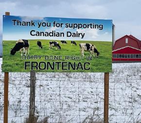 Frontenac DPC is spreading the “Dairy Done Right” message through three signs installed along busy county roads. The four by eight-foot signs include pictures of grazing cows and messages of, “Thanks for supporting Canadian dairy” and “Dairy done right in Frontenac county”.