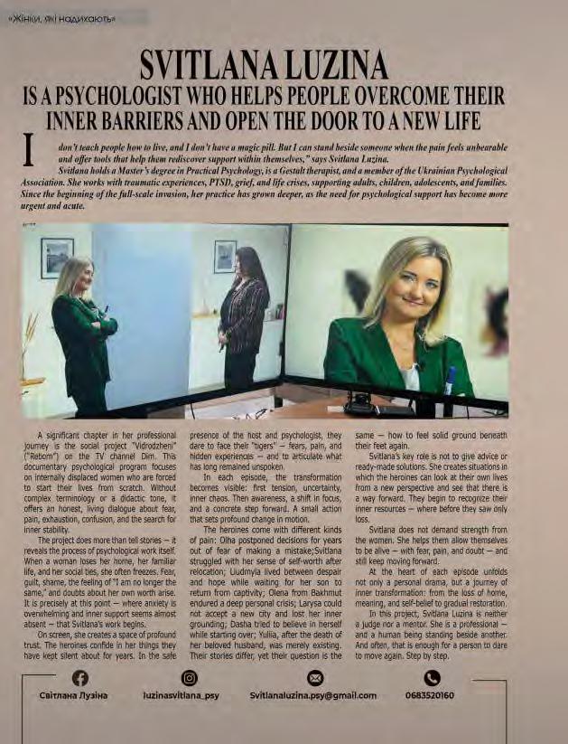 The editorial team sincerely thanks Anna Svitlova for her depth, openness, and inspiration. We wish her further achievements, new projects, and grateful hearts on her path of service.