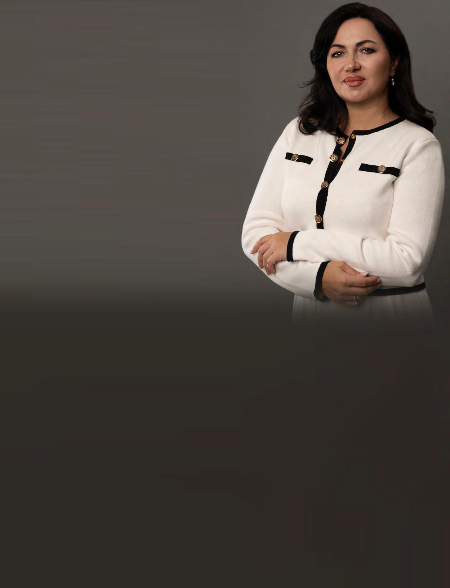 силою, стратегічним мисленням і глибоким розумінням людських історій, що стоять за кожною справою. Юристка, арбітражна керуюча, адвокатка, засновниця ТОВ «Всеукраїнський юридичний