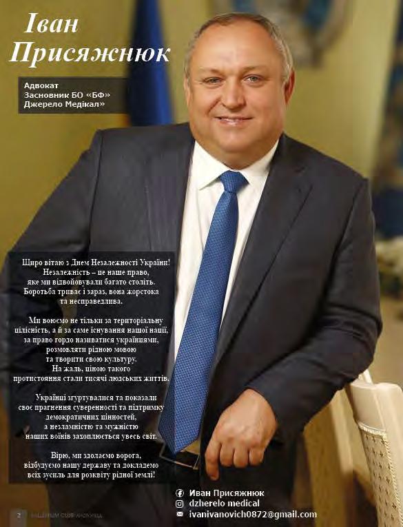 Давайте об’єднаємося, побудуємо майбутнє, яким будемо пишатися, і зробимо Україну країною, в якій кожен українець має можливість реалізувати свій потенціал та жити гідно. Нехай наша Україна квітнє! Хай День Незалежності заповнить наші серця патріотизмом та любов’ю до нашої Батьківщини. Слава Україні! Героям Слава!