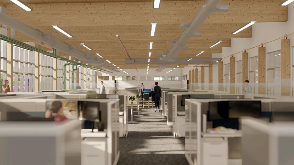 Interesting features = LEED silver, solar array, EV charging, redundant power sources, exposed timber ceilings and columns