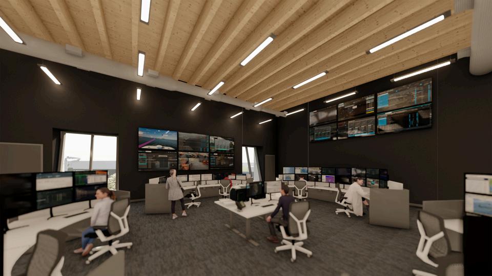 Interior = Ops room, SCADA room, offices, fitness room, conference rooms, break room and restrooms