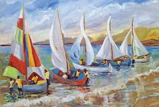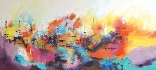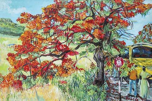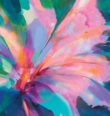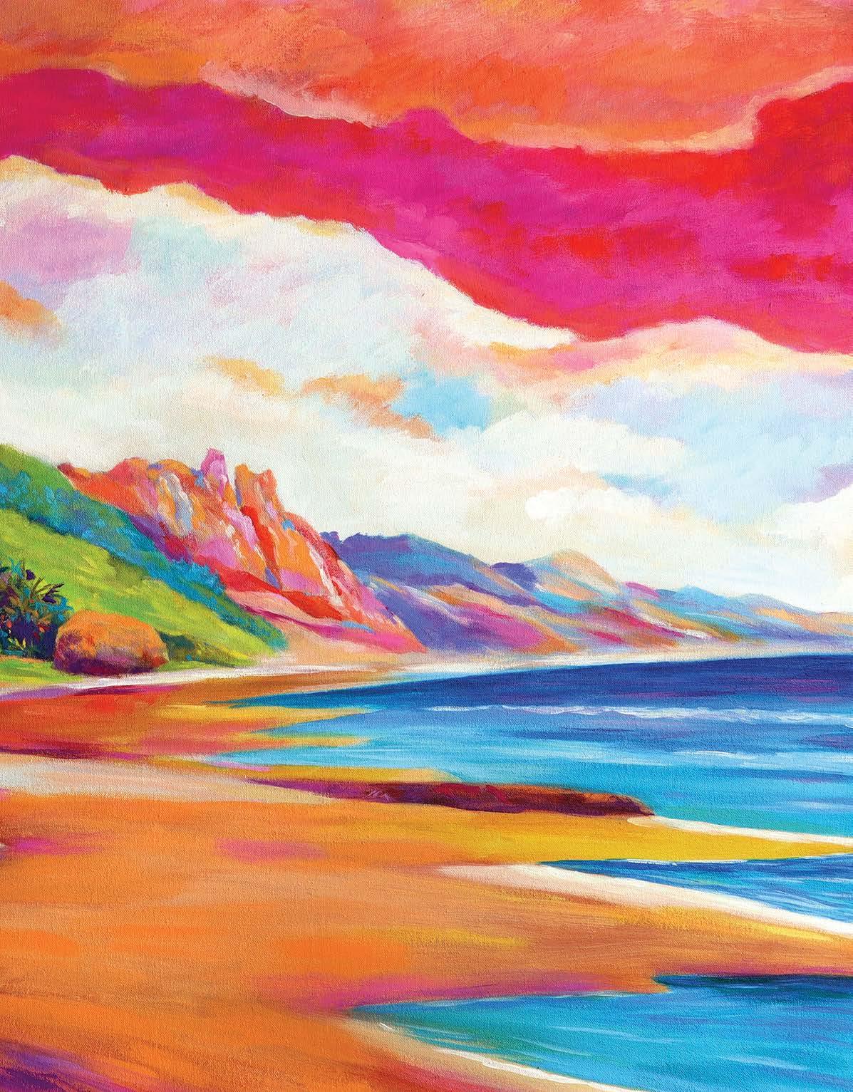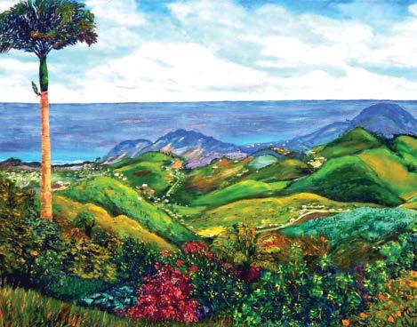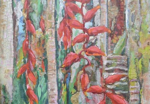 Her artwork explores the shapes and layers of nature, using plant, the land, sea, and even ethereal landscapes as subject matter, influenced by the vibrancy and colour of island living.