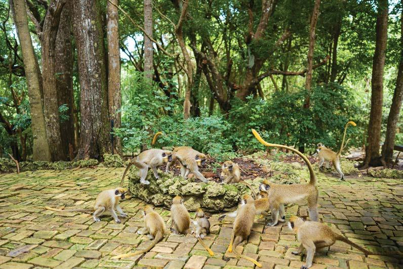 Sea turtles and Barbados green monkeys are the scene stealers, and in Spring the migrating whales put on a show, especially off the north coast. But most of Barbados’ wildlife is small, from the bright green lizards to a birdsong that starts your day, to crabs that emerge in rainy season, to mongooses playing a risky game of chicken, to flitting hummingbirds, dragonflies and butterflies to bees going about their flowery business. The gardens we mentioned may reveal some of these creatures. Nestled in a protected area of mahogany forest, the Barbados Wildlife Reserve shelters troops of monkeys, brocket deer, peacocks, iguanas, caymans and much more; most are happily uncaged.