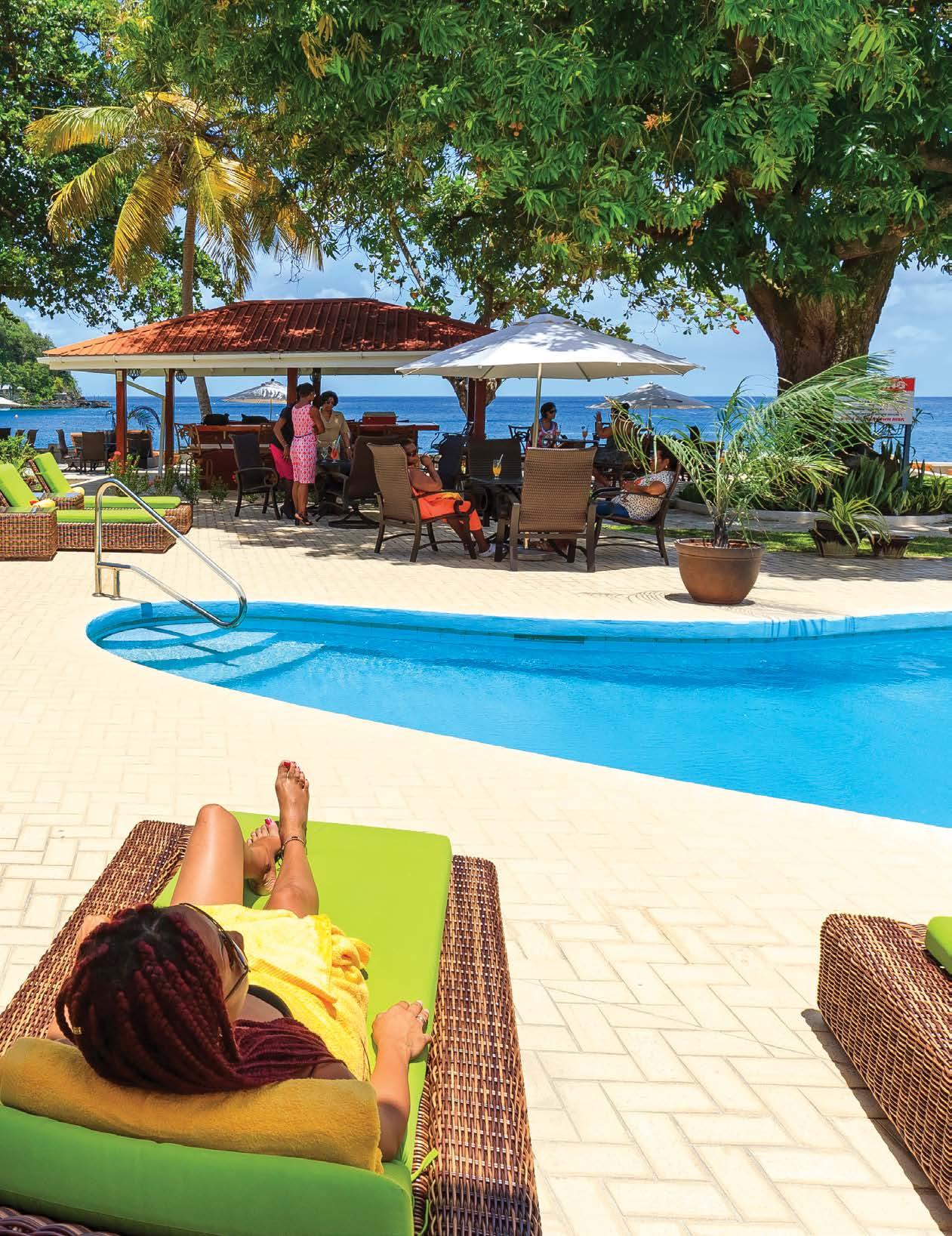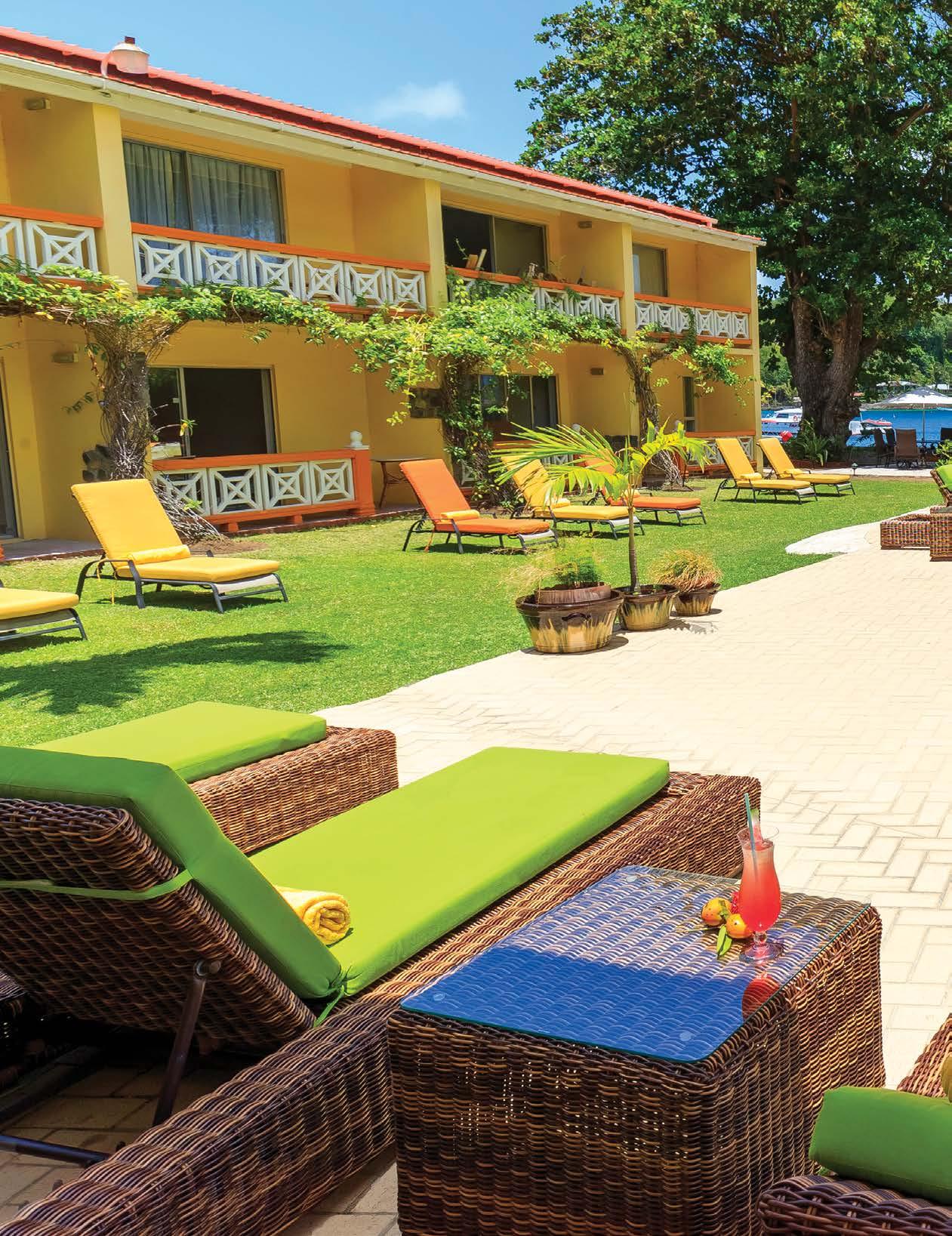 turquoise waters of the Caribbean Sea, savour fresh island-inspired dishes for lunch and dinner at the inviting onsite restaurant (Epiphany), and sip handcrafted cocktails poolside as the sun sets. Let yourself unwind at the patio bar, where breathtaking views and a relaxing atmosphere await. For those planning special occasions, Sunset Shores offers versatile conference facilities and creates a romantic backdrop for weddings and celebrations, making every event uniquely memorable. Discover the perfect blend of relaxation and adventure at Sunset Shores— your Caribbean escape awaits!