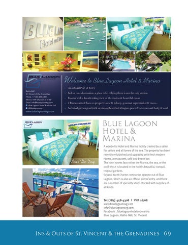 Tel (784) 458-4308 | VHF 16/68 www.bluelagoonsvg.com info@bluelagoonsvg.com Facebook /bluelagoonhotelandmarina Blue Lagoon, Ratho Mill, St. Vincent