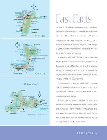61° 12’ W and situated 160 km (100 miles) west of Barbados, 120 km (75 miles) north of Grenada and 40 km (24 miles) south of St. Lucia. St. Vincent, the