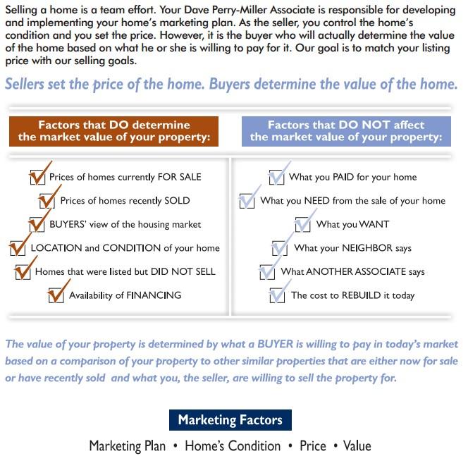 • With competitive pricing of a new listing, multiple buyers will be interested, which will lead to a sale at the highest price available in the current market. Dave Perry-Miller & Associates offers sellers professional guidance for proper pricing. A professional appraisal is another option for an objective opinion of fair market value.