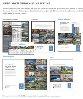 Dave Perry-Miller & Associates maintains one of the most diversified advertising programs in the Metroplex, prompting hundreds of inquiries daily from buyers currently in the market. Your home will appear in the Dallas Morning News shortly after listing and when held open, and then from time to time, until sold.