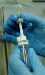 • Connect the blood product to the transfusion line in the same aseptic way you would connect any other fluids to a giving set.