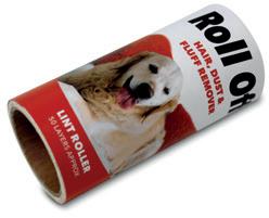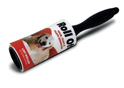 A free rotating roll of adhesive paper tape. Easy to peel off sheets to expose new ready-to-use clean surfaces. Mounted on a black plastic hub and handle. Removes animal fur and hair from clothes, fabrics and furniture.