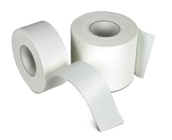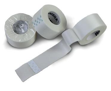 A superior strong, durable, hypoallergenic, artificial silk adhesive tape. Easily cross-torn due to its pinked edge. A superior alternative to traditional cloth/cotton tapes. Incredibly soft and conforming with a clear adhesive, extremely strong, non-stringing, silk-like woven material.