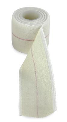 Natural white in colour, this is a superior, durable, ventilated, non-fray selvedge elastic adhesive stretch bandage. Ribbon-woven elastic cloth with red or yellow guide-line along centre of width to allow correct overlap application. Used for support and compression in the treatment of patient fractures, swollen joints and tissue traumas.