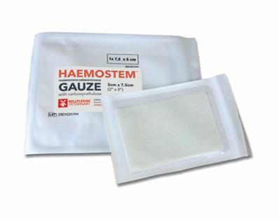 Haemostatic Gauze, is a delicately woven, thin, fragile pad of modified carboxycellulose fibres. Can be sutured or layered onto wound surfaces of soft tissues and internal organs.