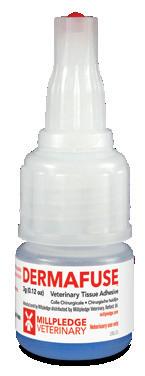 Enthält 4 sterile Applikatorspitzen. Dermafuse® Gewebekleber ist ein medizinischer Klebstoff, der zum Verkleben von Gewebe nach veterinärmedizinischen Verfahren (d. h. bei Risswunden, Abschürfungen, Naht-/Klammerlinienversiegelung, Zahnextraktionen, Mundoperationen, Kastration und Afterklauen-Entfernung) verwendet wird. Das Produkt enthält blauen Farbstoff, damit der Benutzer leicht erkennen kann, wo das Produkt aufgetragen wurde.