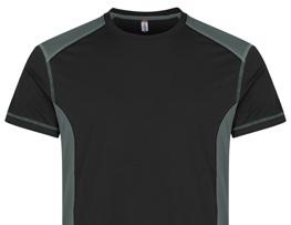 Laadukas esikutistettu kampapuuvillainen T-paita, jonka kaulusresori sisältää aitoa Spandexia, peitetty/vahvistettu olka- ja niskasauma.