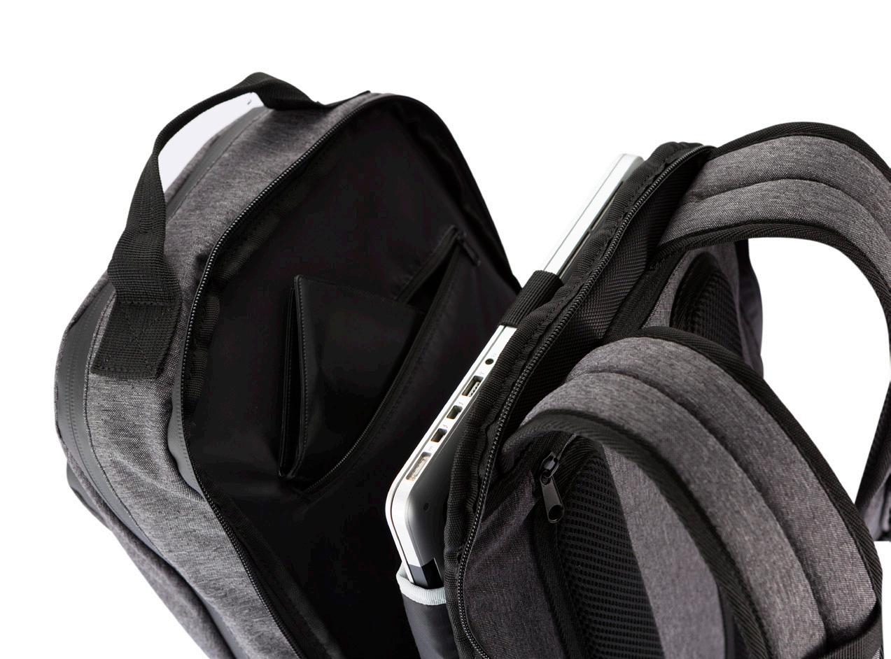 Kätevän mallinen reppu, joka sopii moneen käyttöön. Kaksi suurta osastoa ja oma tasku tietokoneelle. Toisessa osastossa on verkkotaskuja ja avainklipsi. Ylimmässä taskussa tavarat ovat helposti saatavilla, ja selänpuoleisessa piilotaskussa arvotavarat pysyvät turvassa. Takana on tukeva remmi, josta repun voi kiinnittää matkalaukun päälle. Heijastavat yksityiskohdat parantavat näkyvyyttäsi pimeällä.