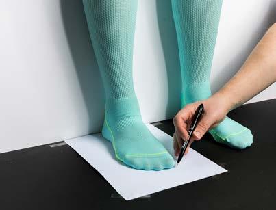 Pyydä toista henkilöä piirtämään (tai piirrä itse) paperiin varpaidesi ääriviivat (jalan pisin kohta). Tee sama toiselle jalalle, sillä oikea ja vasen jalka saattavat olla erikokoiset.