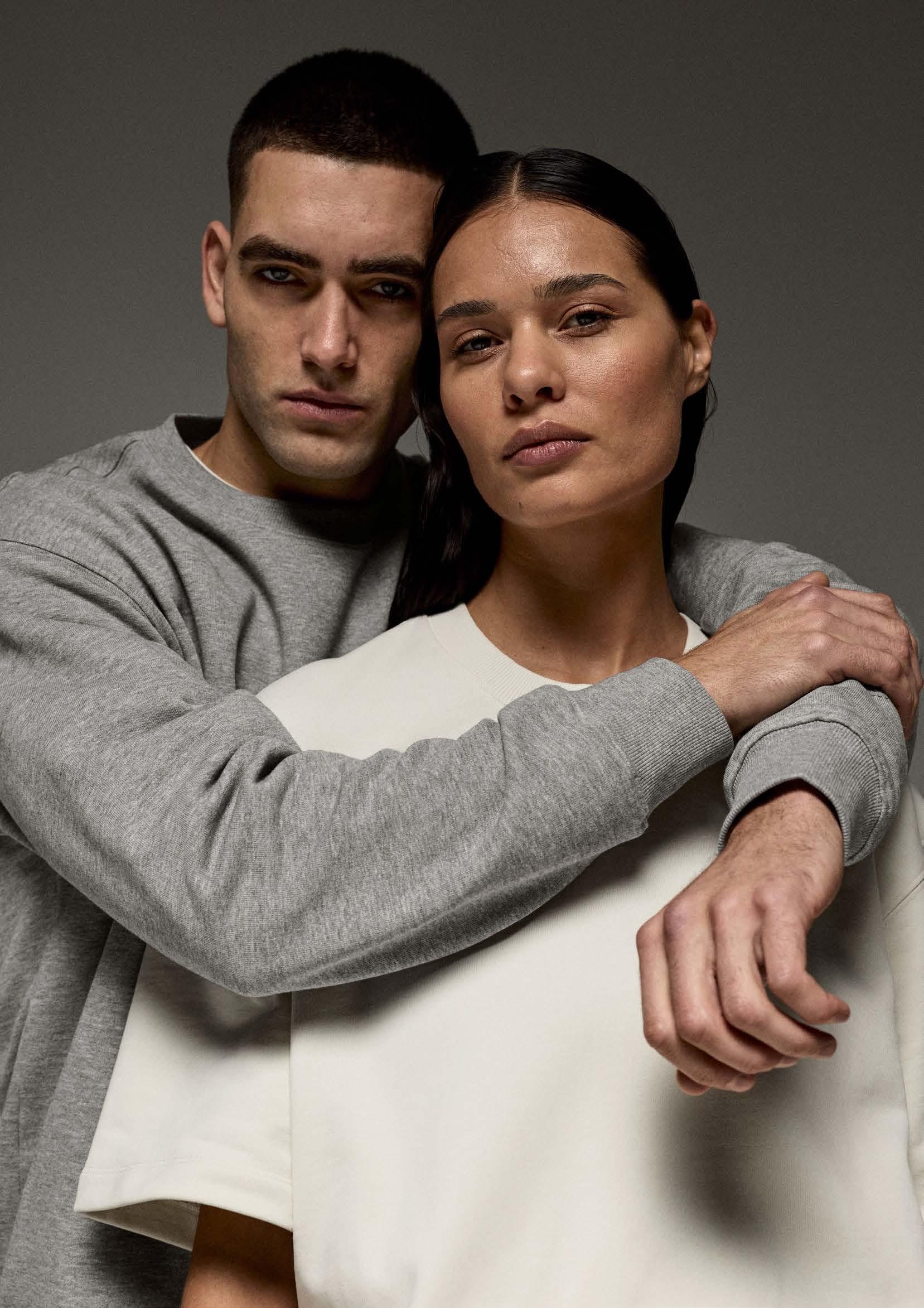 Rento design yhdistettynä pehmeään materiaaliin kierrätettyä polyesteriä ja luomupuuvillaa tekee tästä mallistosta täydellisen valinnan rentoihin hetkiin harjoitusten välissä.