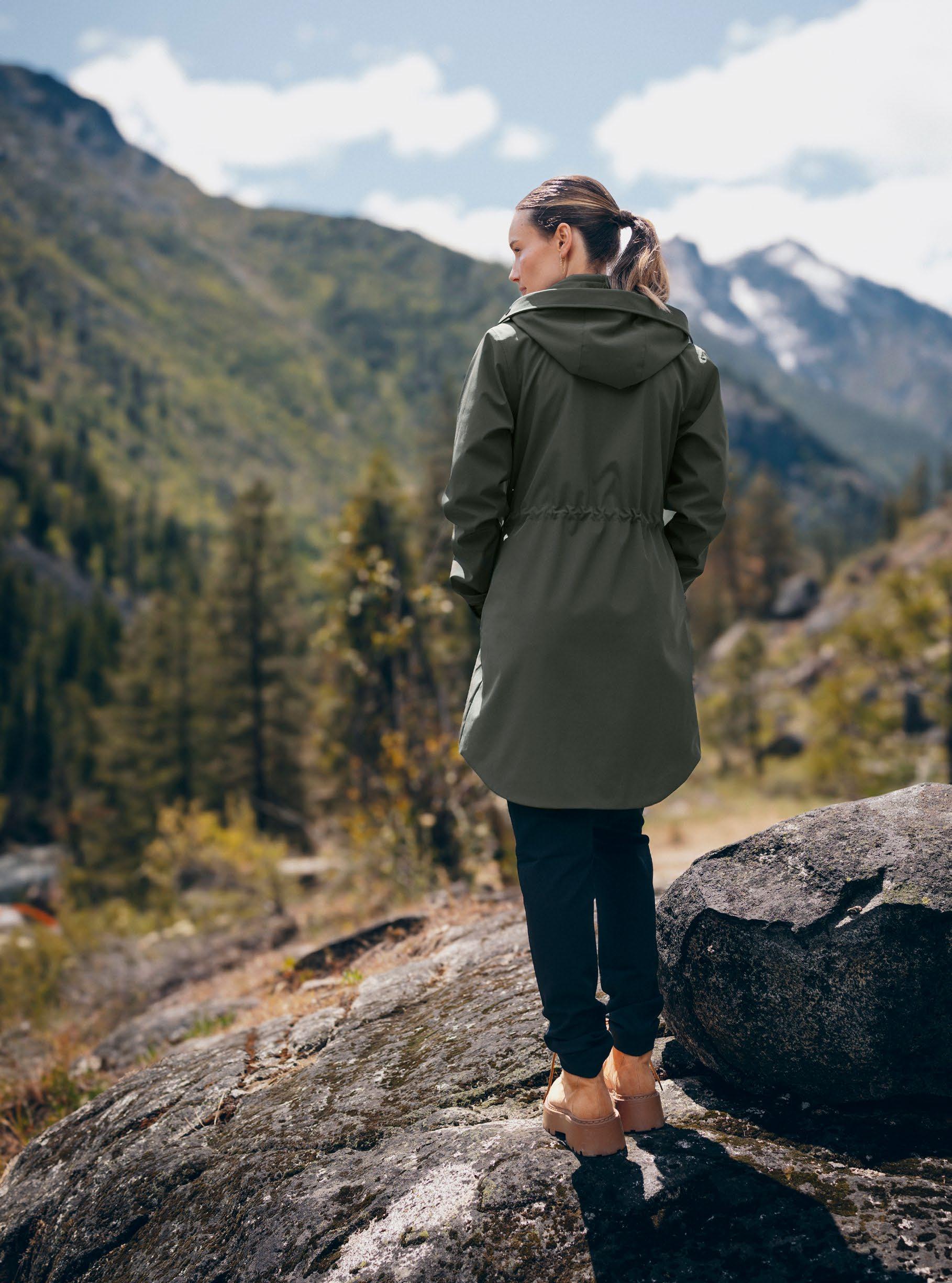 Valmistettu korkealaatuisesta WeatherTec™ -kierrätetystä polyesterista ja spandexista, jotka antavat luotettavan suojan sateella. Takki on tuulen- ja vedenpitävä, mutta täysin hengittävä saumatiivistetyn teknologian ansiosta. Takissa on vedenpitävät vetoketjut, sisätasku ja vetoketjullinen huppu. Naisten mallia voidaan säätää vyötäröltä kiristysnyörillä. Täydellinen takki ulkoiluun!