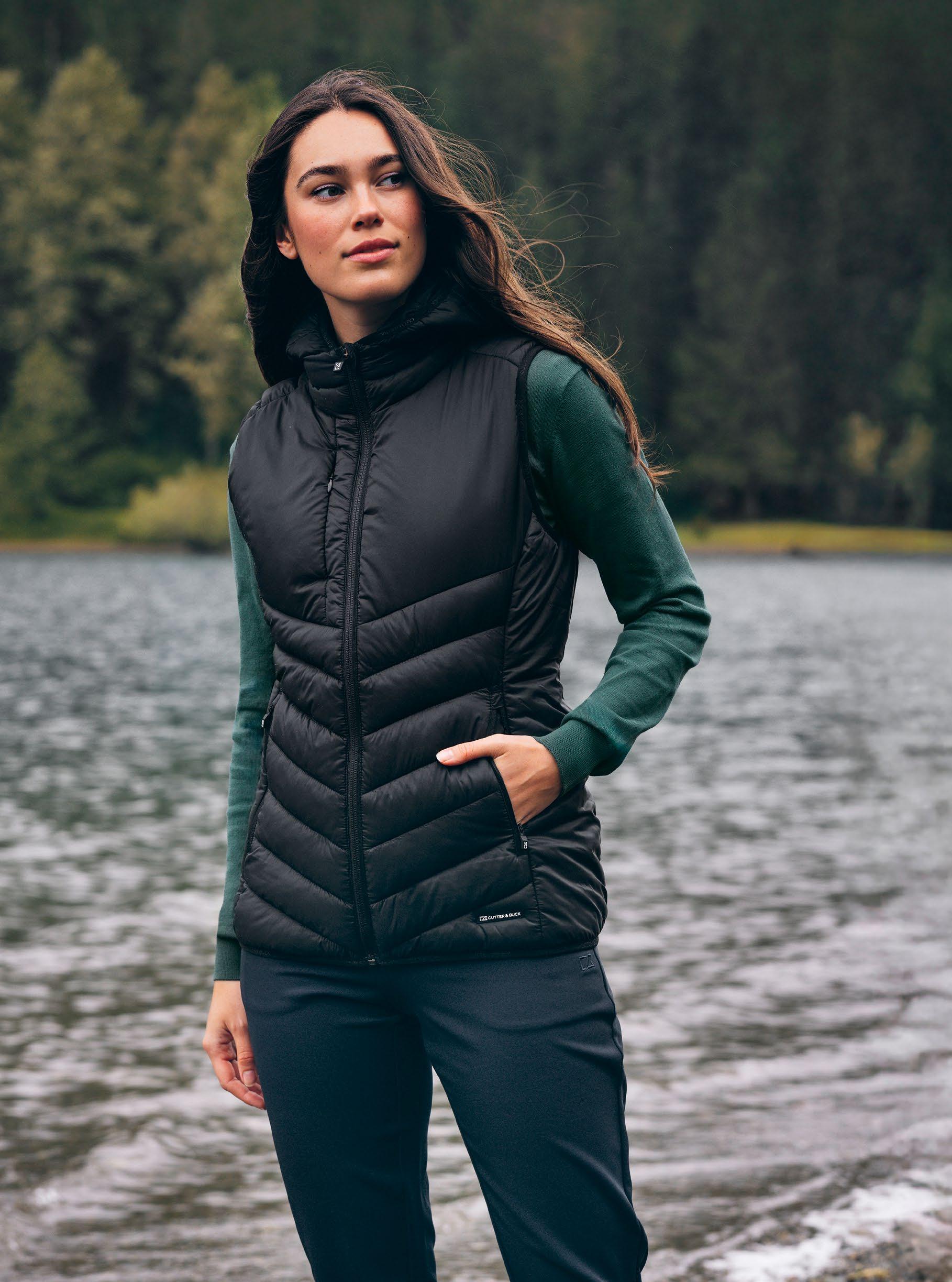 Täydellinen liivi ulkoiluun viileillä keleillä. Ozette on Primaloft Black Eco® -eristeellä varustettu liivi, ja päällyskangas on valmistettu 100 % kierrätetystä nailonista. Pystysuorat tikkaukset varmistavat imartelevan istuvuuden. Tämä liivi on ihanteellinen kerrospukeutumiseen. Kaksi vetoketjullista sivutaskua.