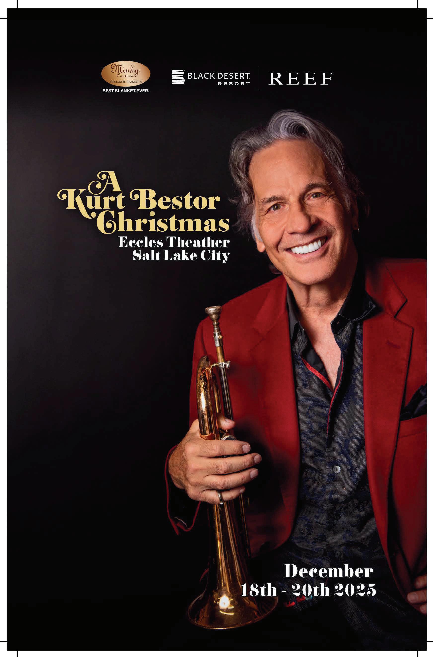 Kurt Bestor Christmas playbill is published by Mills Publishing, Inc., 772 East 3300 South, Suite 200, Salt Lake City, Utah 84106 Phone: 801.46.8833 Email: advertising@millspub.com Website: millspub.com Mills Publishing produces playbills for many performing arts groups. Advertisers do not necessarily agree or disagree with content or views expressed on stage. Please contact us for playbill advertising opportunities. Copyright 2025. PLEASE RECYCLE