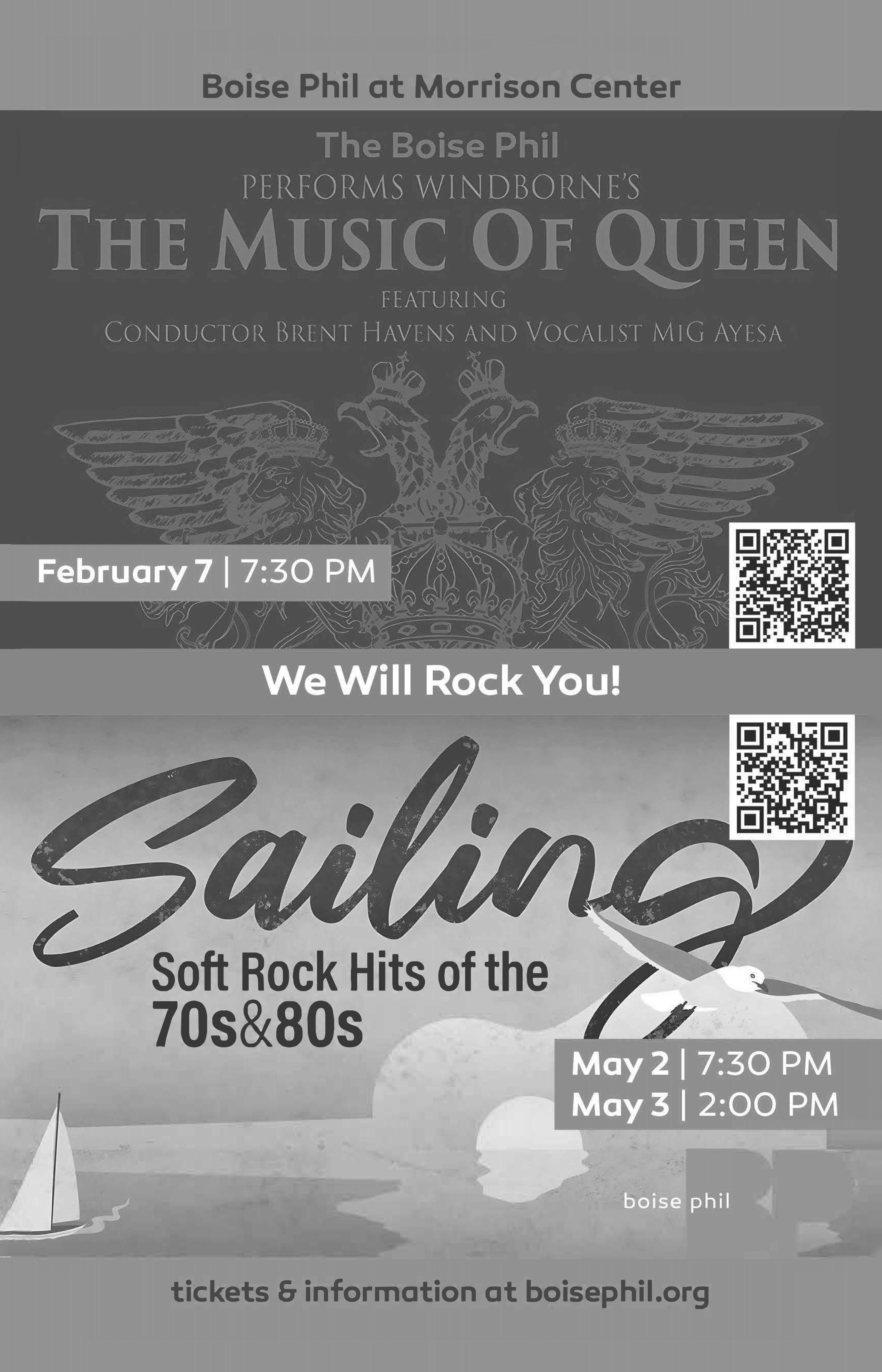 Broadway in Boise playbill is published by Mills Publishing, Inc., 772 East 3300 South, Suite 200, Salt Lake City, Utah 84106 Phone: 801.467.8833 Email: advertising@millspub.com Website: millspub.com Mills Publishing produces playbills for many performing arts groups. Advertisers do not necessarily agree or disagree with content or views expressed on stage. Please contact us for playbill advertising opportunities. Copyright 2025.