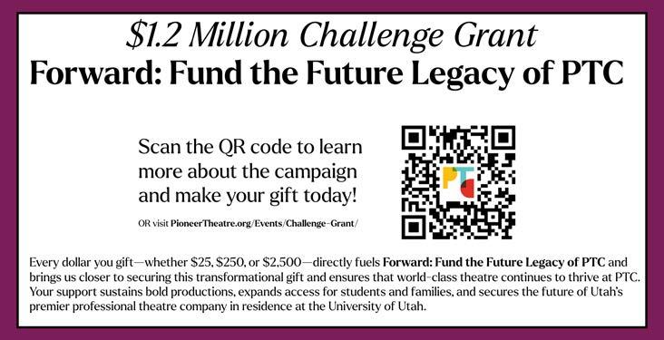 PIONEER THEATRE COMPANY (PTC) Now celebrating its 64th season, the award-winning PTC is Utah’s premier professional theatre company and a
