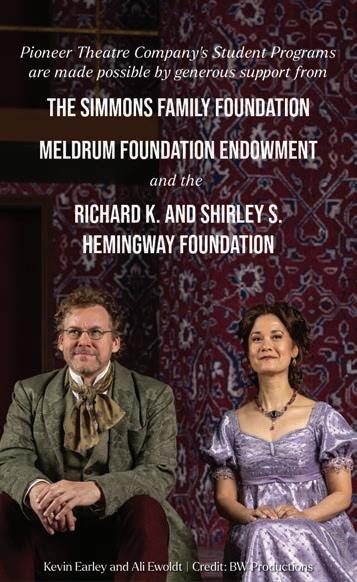 The theatre operates under an agreement between the League of Resident Theatres and Actors’ Equity Association, the Union of Professional Actors and Stage Managers in the United States. The Pioneer Theatre Company program is published by Mills Publishing, Inc., 772 East 3300 South, Suite 200, Salt Lake City, Utah 84106 Phone: 801.467.8833 Email: advertising@millspub.com Website: millspub.com. Mills Publishing produces playbills for many performing arts groups. Advertisers do not necessarily agree or disagree with content or views expressed on stage. Please contact us for playbill advertising opportunities. Copyright 2024.