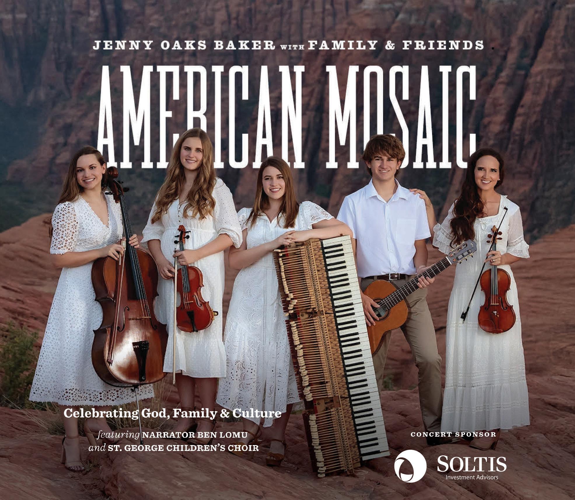 GRAMMY Nominated violinist Jenny Oaks Baker along with her accomplished musical family and friends, present a new Americana Show that tells the story of America, highlighting the peoples, cultures and beliefs that have come together to create our beautiful and rich American Mosaic. With music by Emmy Awardwinning composer Kurt Bestor, script by New York Times Best-selling Author Jason F. Wright, narration by Ben Lomu, singing by the St. George Children’s Choir, as well as spirited dancing throughout, this show promises to inspire a greater appreciation for America, the diverse American people and the vibrant American Mosaic!