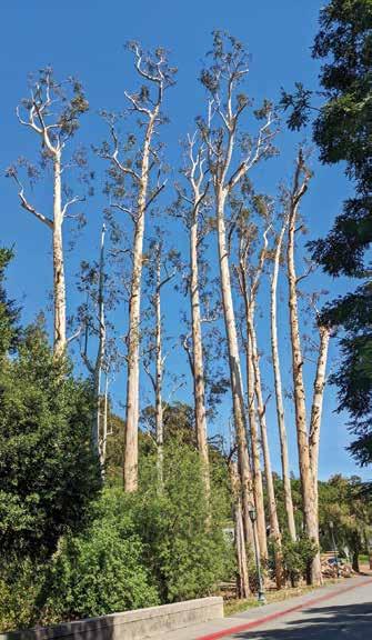 “We have [the firm] come every year, but it’s usually very focused—the work is on one section of the campus at a time,” Stauss says. “It’s like taking sails off of a boat, so when a big wind comes through, the trees won’t get blown over.” In the wake of that January storm, the firm—Hummingbird Tree Services, based in San Bruno—was on campus for five weeks trimming and taking down trees that were “threatening buildings, or about to be,” Stauss adds. “We prioritize the trees that are near people spaces, so we have to keep an eye on the others out in the back and other places like that.”
