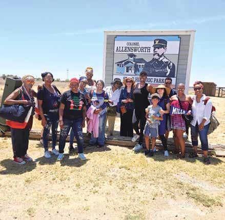 In recent years, her scholarship has included the town of Allensworth, California, which was founded by Colonel Allen Allensworth in Tulare County, northwest of Bakersfield, in 1908. And in honor of Juneteenth this year, she led a group of Mills alums and guests on a daytrip to the historic site.