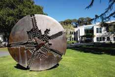 Though the renowned sculptor Arnaldo Pomodoro taught at Mills for a relatively brief time in the College’s long history, his legacy lives on in his moveable bronze work “Disco,” which has entertained legions of students—particularly the youngest ones on campus—since its installation on Holmgren Meadow in 1987. In addition to his time on the faculty at Mills in the 1970s and ’80s, Pomodoro also taught at Stanford and UC Berkeley, and additional works can be found outside the Vatican Museums in Rome and at the United Nations in New York.