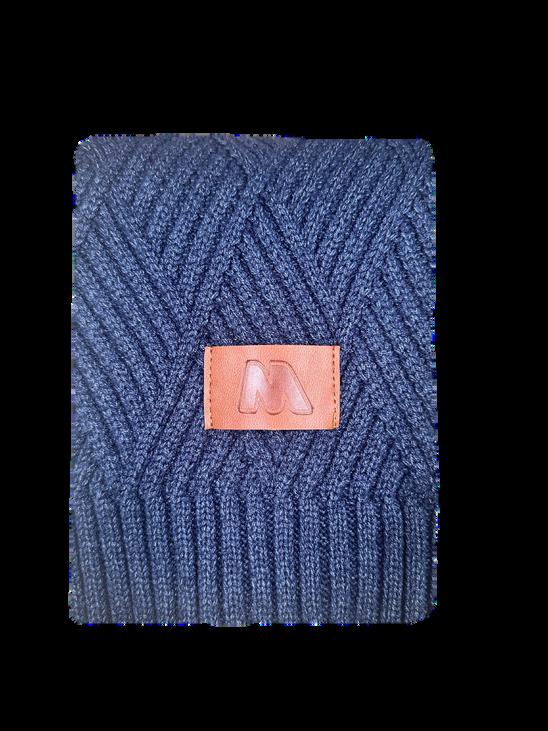Waffle Knit Beanie with Cuff Retro Logo Colors: Tan and Navy