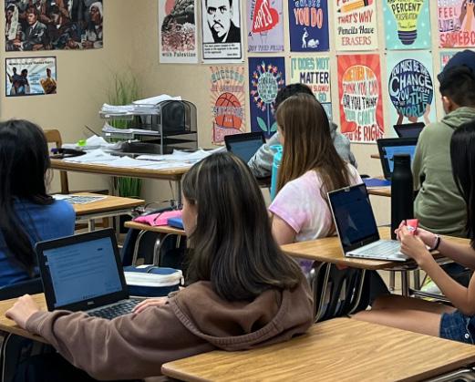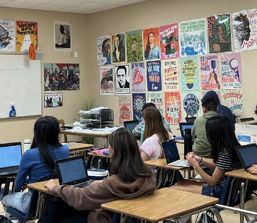 MILLS MODERN WORLD HISTORY CLASS: Students in Ms. Ogechi’s class are seated before an array of motivational posters.