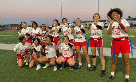 In the Spring of 2023, Girls Flag Football was introduced to Mills following the offcialization of the sport early February in California. The objective of girls fag football is similar to Tackle football in the way that the plays are based off of the same guidelines. However, instead of tackling players to win a ball from the opponent, fags are pulled off of bands worn around the waist to signify the end of a play.