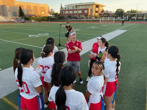 When the fateful Wednesday of the frst game arrived, nervous yet excited energy was buzzing around the team. Focus on team chemistry and community was key in fostering positive reinforcement for the frst game. Sophomore fag football athlete Maizie Deguzman (10) added, “Our team has really good chemistry and we’re able to teach and help each other out. I really appreciate how much support and encouragement we have on the team.”