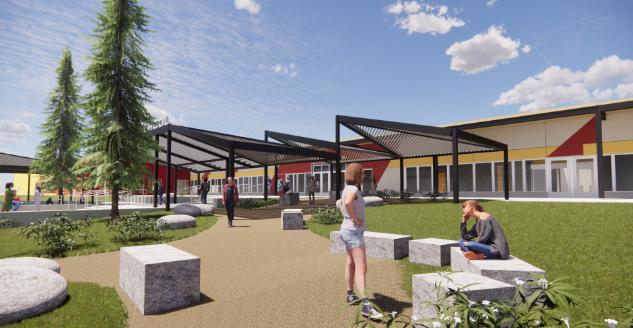 know, and there’s…not a lot of shade out there at all.” She said that there would be new benches, plants, and sitting rocks for the front of the school as well for students to enjoy lunch or wait for their parents to pick them up.